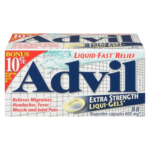 Buy Advil Extra Strength Liquid Gels in Pakistan. Each 200 mg ibuprofen soft gel provides fast relief from headaches, back pain, menstrual cramps, joint pain, and arthritis. Works in 30 minutes, lasts up to 8 hours.