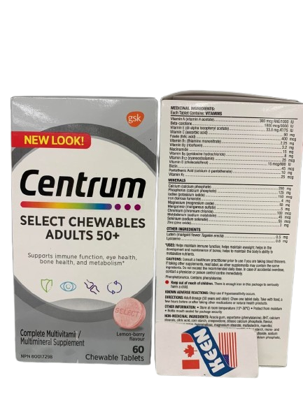 Centrum Select Essentials 50+ Chewable – Multivitamin for Adults Over 50 (Imported from Canada)