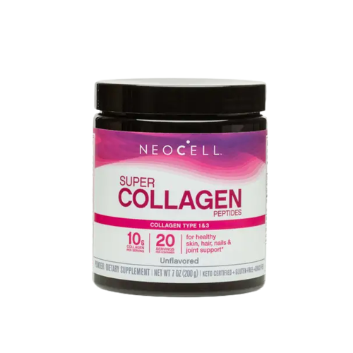 NeoCell Super Collagen Peptides Powder is a premium collagen supplement that supports healthy skin, hair, nails, and joints. Each serving delivers 6,600 mg to 10,000 mg of hydrolyzed collagen peptides (Types 1 & 3) from grass-fed bovine sources, making it one of the most trusted beauty-from-within solutions worldwide.