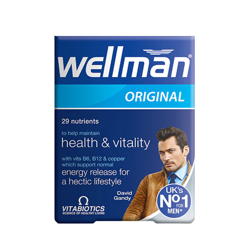 Wellman Original by Vitabiotics is a comprehensive multivitamin supplement designed specifically for men. It contains a blend of 29 essential nutrients, including Siberian Ginseng, Co-enzyme Q10, and amino acids, to support energy release, immune function, reproductive health, and overall vitality. Here are some key points about Wellman Original: